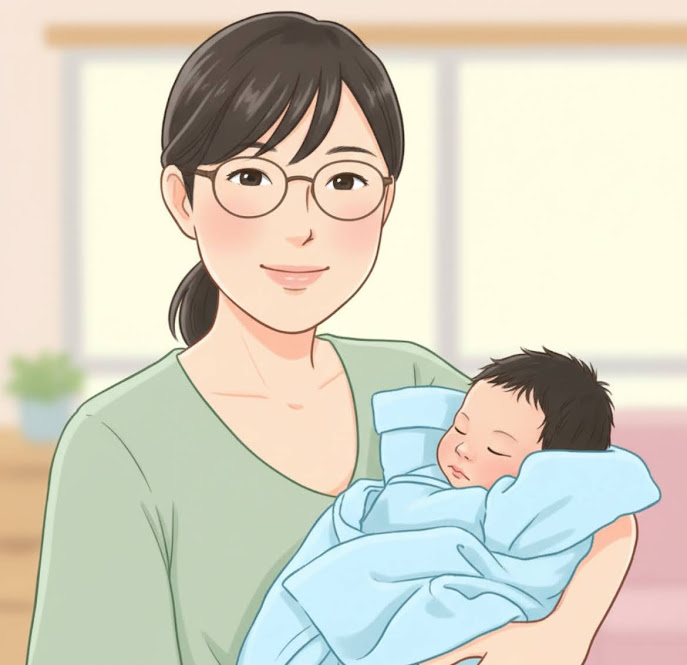 - 長男の出産後、助産師の資格を取得。仕事と育児に追われる日々。